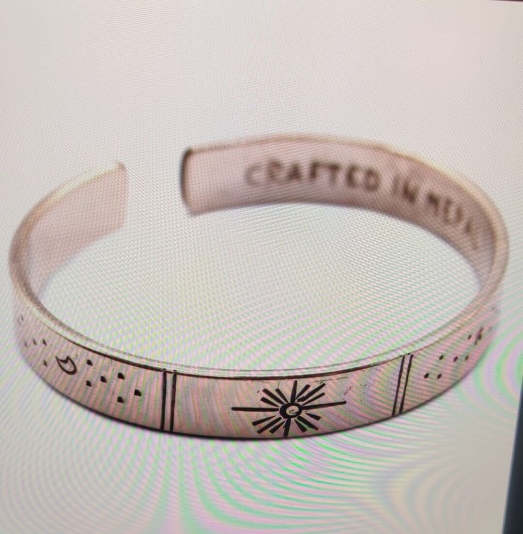 This bangle bracelet have galaxy design on the outside and inspirational messages inscribed inside.
