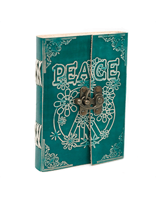 This beautifully decorated notebook is Hand-made with a leather cover and closed